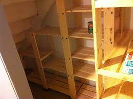 Basement stairs shelves. I have shelves installed like yours and also on the wall directly across from them floor to ceiling my basement door opens from the side and you turn to go down the stairs. 00 1326Sq Ft This storage has ample space to hold items to keep them in a neat and tidy condition. Build heavy framed shelving with 2-by-4.